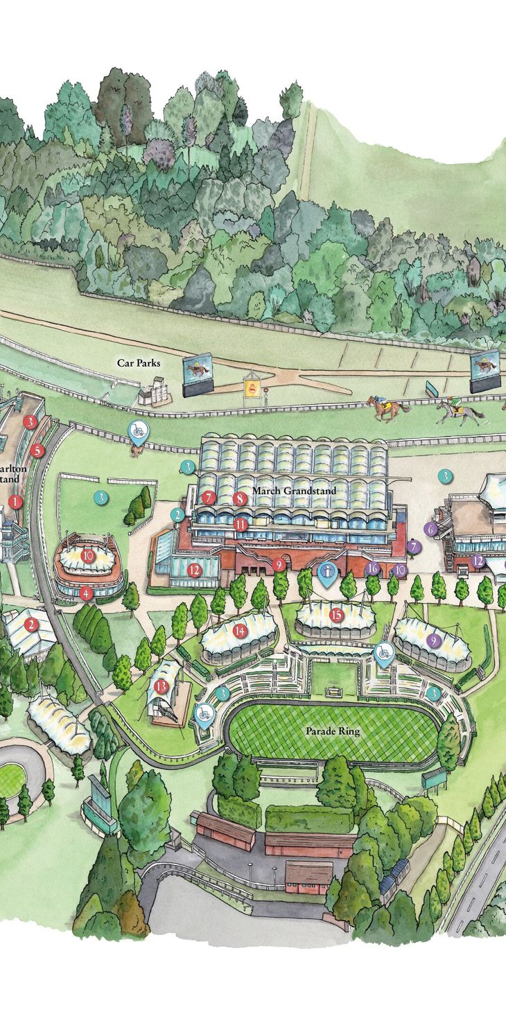 Plan your day in advance with our detailed map, complete with a guide to the different enclosures, where to get food and drink, betting facilities, and disabled facilities.